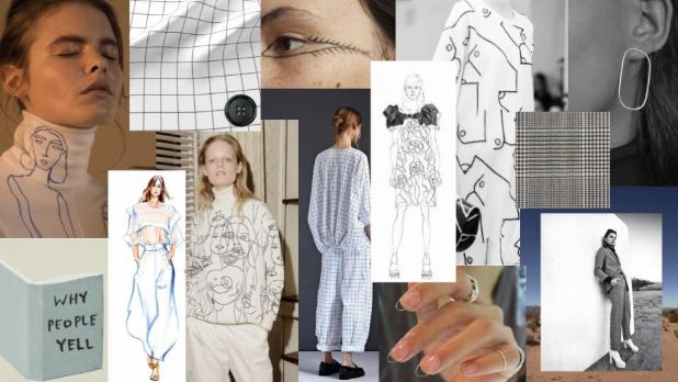 It is always a great idea to start adding pictures of fabrics/colors/prints next to each one of your sketches. My personal tip here is, when working on your first draft of sketches, draw the sketch right next to the picture which inspired you for that design. The colors and shapes on the picture will help you to choose fabrics and colorways - especially if the inspiration picture is related to nature and natural colors. It will give you a direction for materials.