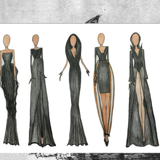 Below are a few pictures as an example of a mood board, first drafts, and final collection. This was my final project for fashion school. A conceptual collection inspired by the Spanish artist Francisco Goya.